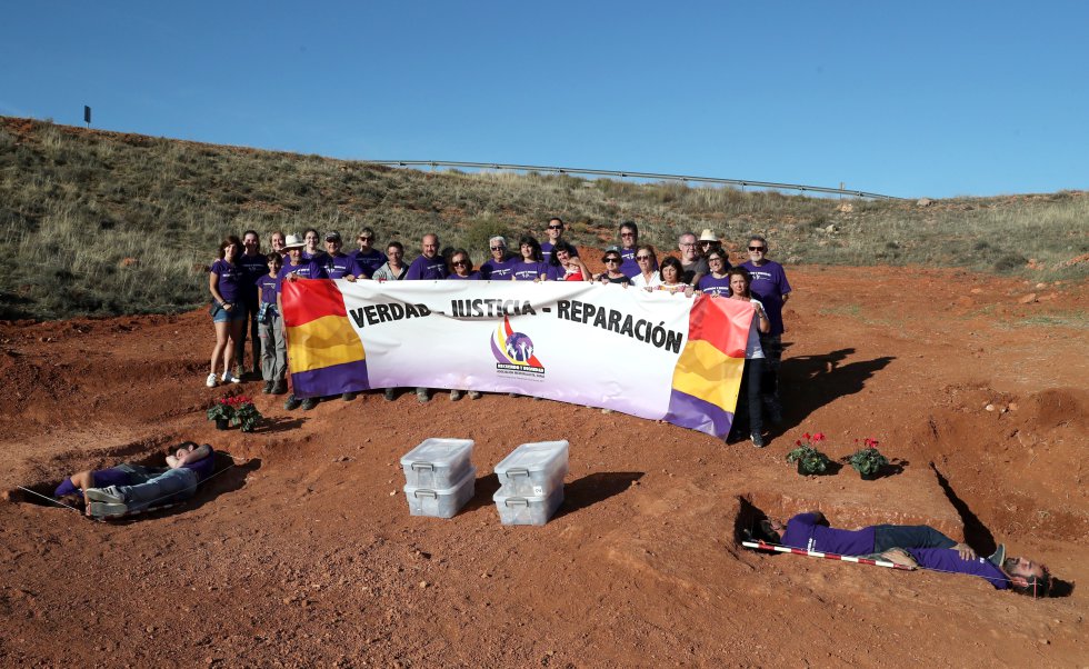 Miembros de la Asociación Recuerdo y Dignidad en La Riba de Escalote. Fotografía: elpaís.com